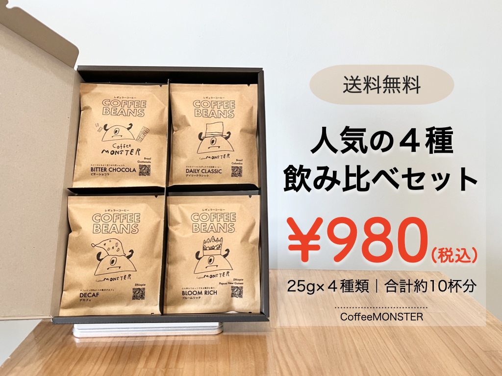 朝・仕事中・おやつタイム・夜まで、シーン別に楽しめる人気のオリジナルブレンド4種類を詰め合わせました。